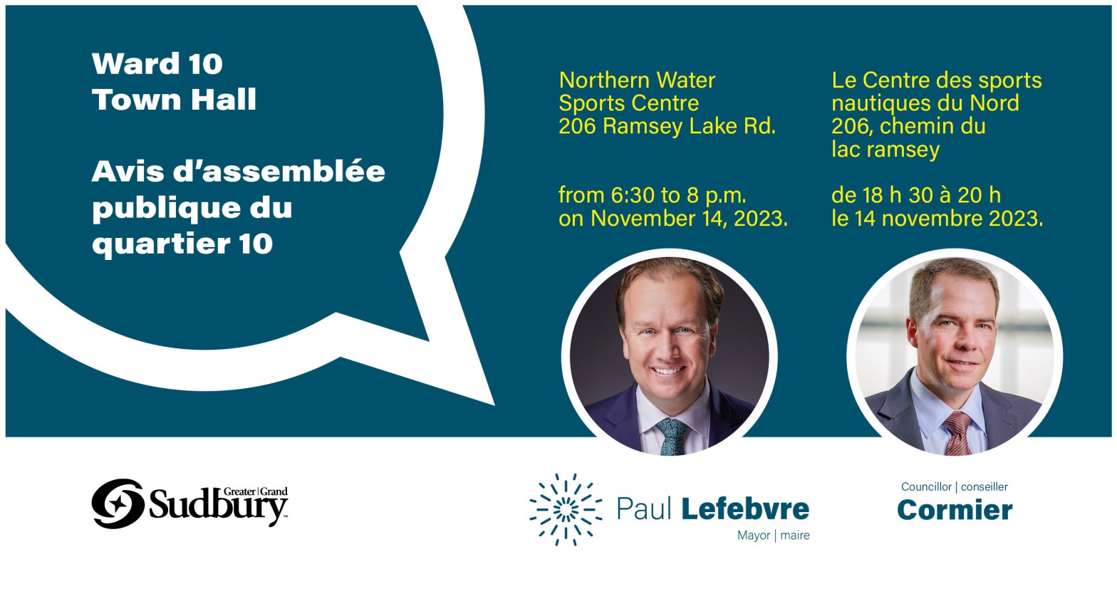 The Kingsmount-Bell Park CAN invites you to attend the Ward 10 Town Hall at the Northern Water Sport Centre, 206 Ramsey Lake Road from 6:30 – 8:00 pm, November 14, 2023.